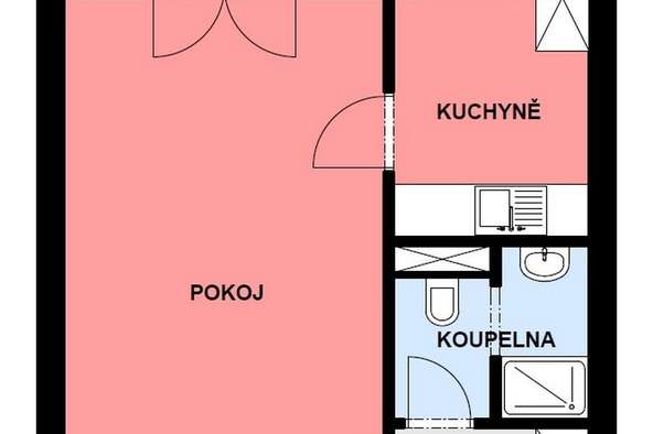 Pokoj 19 m2, kuchyně 5,8 m2 se spíží, předsíň 2,48 m2, koupelna se sprchovým koutem, a s toaletou 2 m2, lodžie 3 m2, sklep 1 m2.