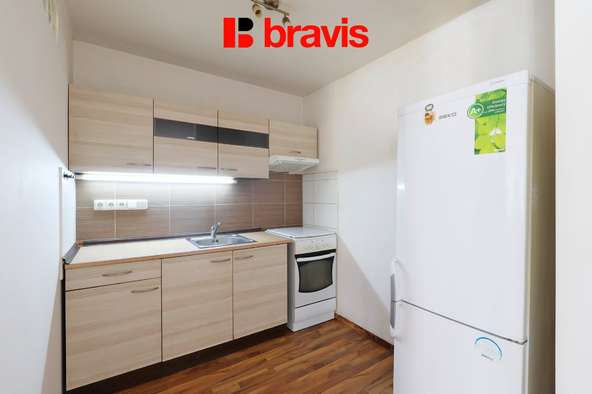 Kuchyňská část je vybavena kuchyňskou linkou se spotřebiči (el. trouba s varnou deskou, digestoř, lednice s mrazákem).