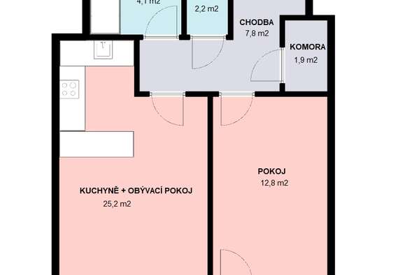 V bytě se nachází komora (2 m2), kde je možné také zapojit pračku.