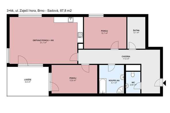 Ve výhradním zastoupení majitele nabízíme k pronájmu krásný byt 3+kk s garážovým stání a kójí na ul. Zaječí hora v žádané lokalitě Brno - Sadová.