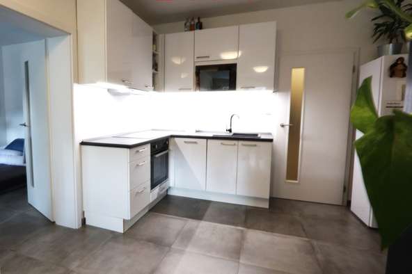 Kuchyňská část je vybavena vestavěnou kuchyňskou linkou s varnou deskou, el. troubou, mikrovl. troubou a digestoří.