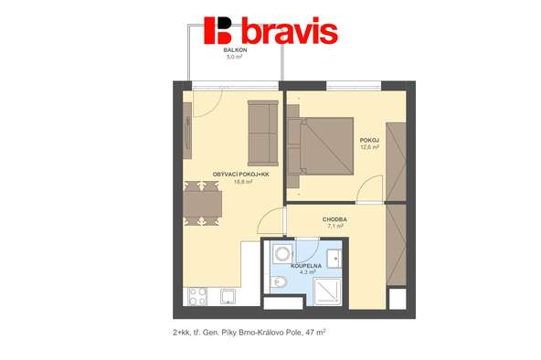Ve výhradním zastoupení majitele nabízíme k dlouhodobému pronájmu byt o dispozici 2+kk na ulici Třída Generála Píky v Brně-Černých Polích.