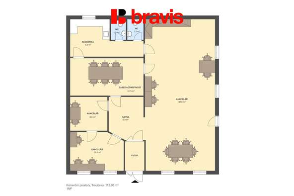 • 3 samostatné kanceláře