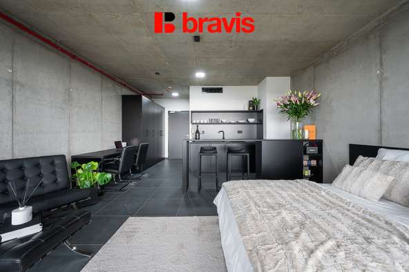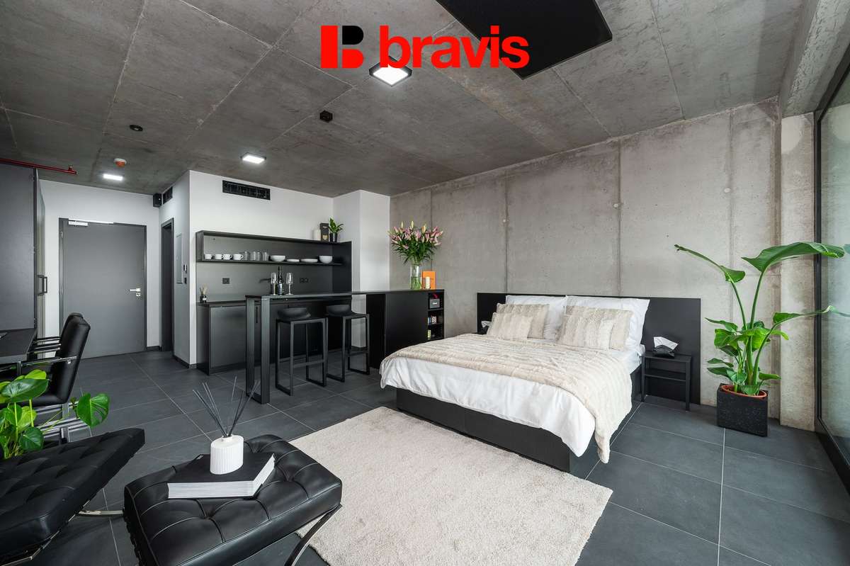 na ulici Královopolská v Žabovřeskách nabízíme k pronájmu moderní a tiché 1+kk v 3. podlaží s velkou lodžií. Tento konkrétní byt nenabízí výhled. K dispozici jsou však i jednotky s výhledem, můžete si vybrat.