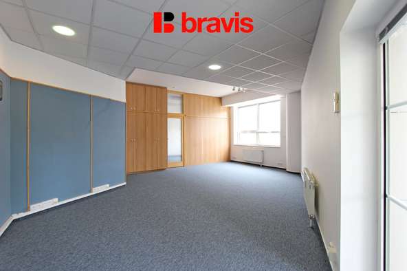 K dispozici jsou dvě místnosti z nichž z jedné se prochází do druhé. Kancelář se podnajímá včetně vybavení uvedeného na fotograficíh: kancelářské stoly se židlemi, křesla, pohovka, stolní počítač, kávovar, regály.