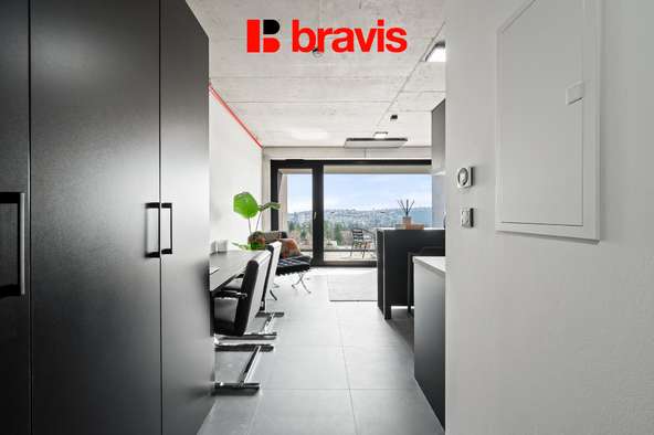Z lodžie se otevírá krásný, ničím nerušený pohled na Brno. Ideální místo pro ranní kávu, večerní sklenku nebo chvíle klidu nad městem.