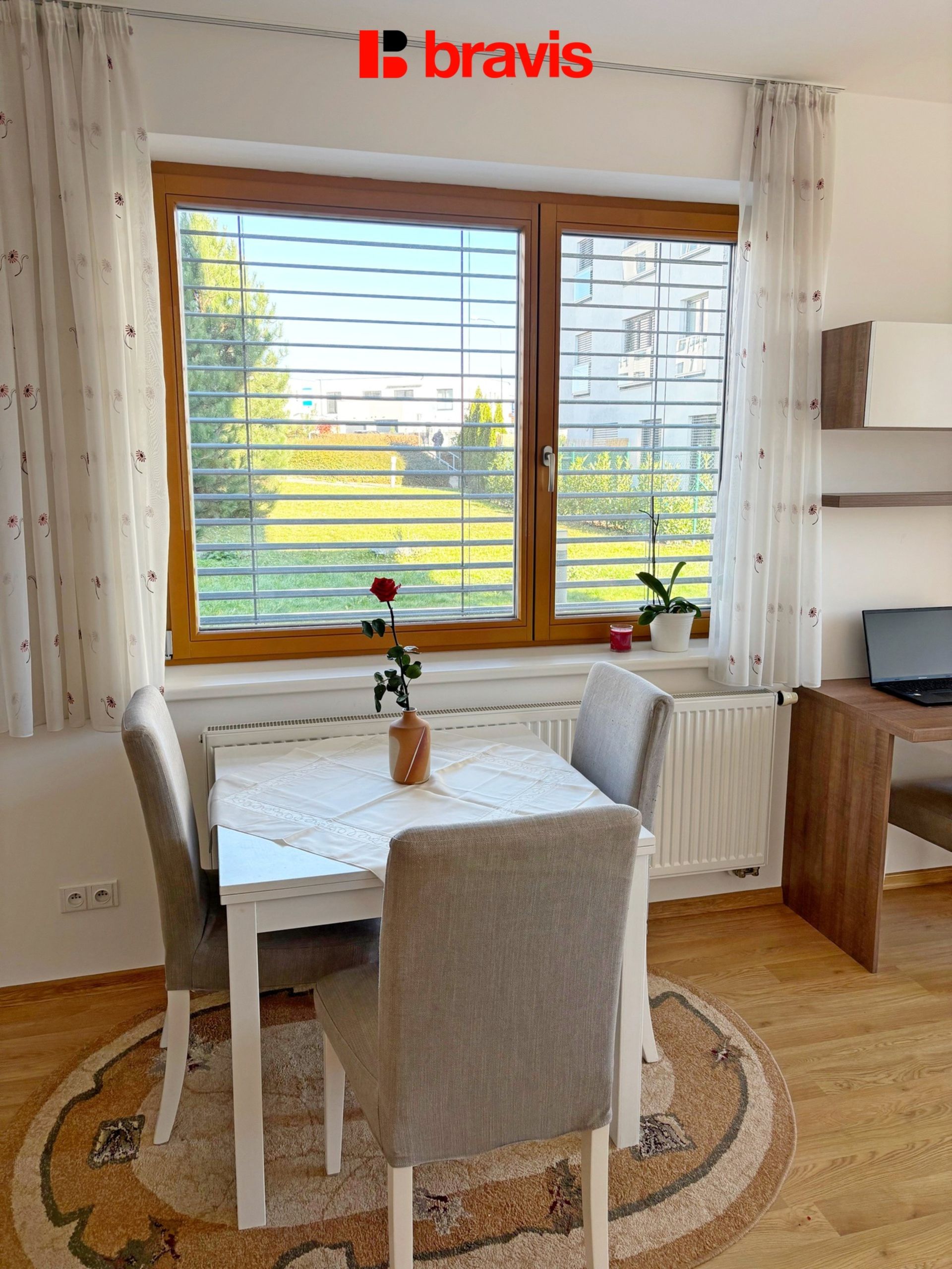 Pronájem moderního bytu 2+kk se zahrádkou, ul. Moskalykova, Brno - Sadová, zařízené, sklep, garážové stání