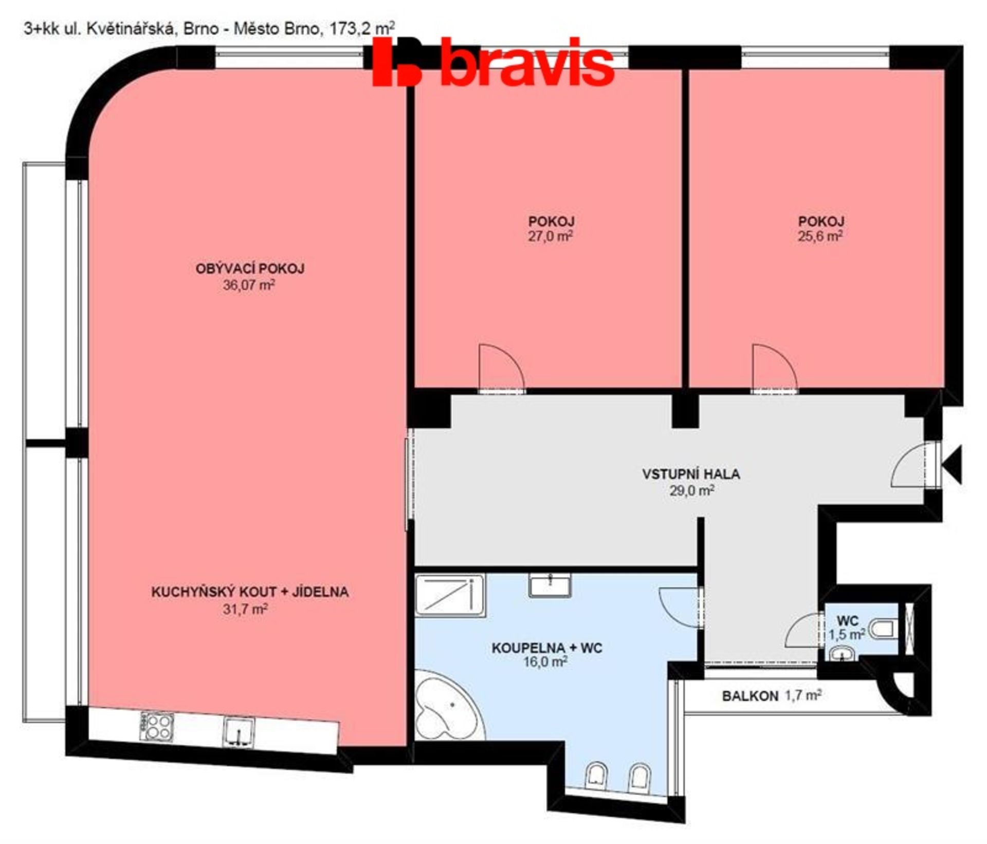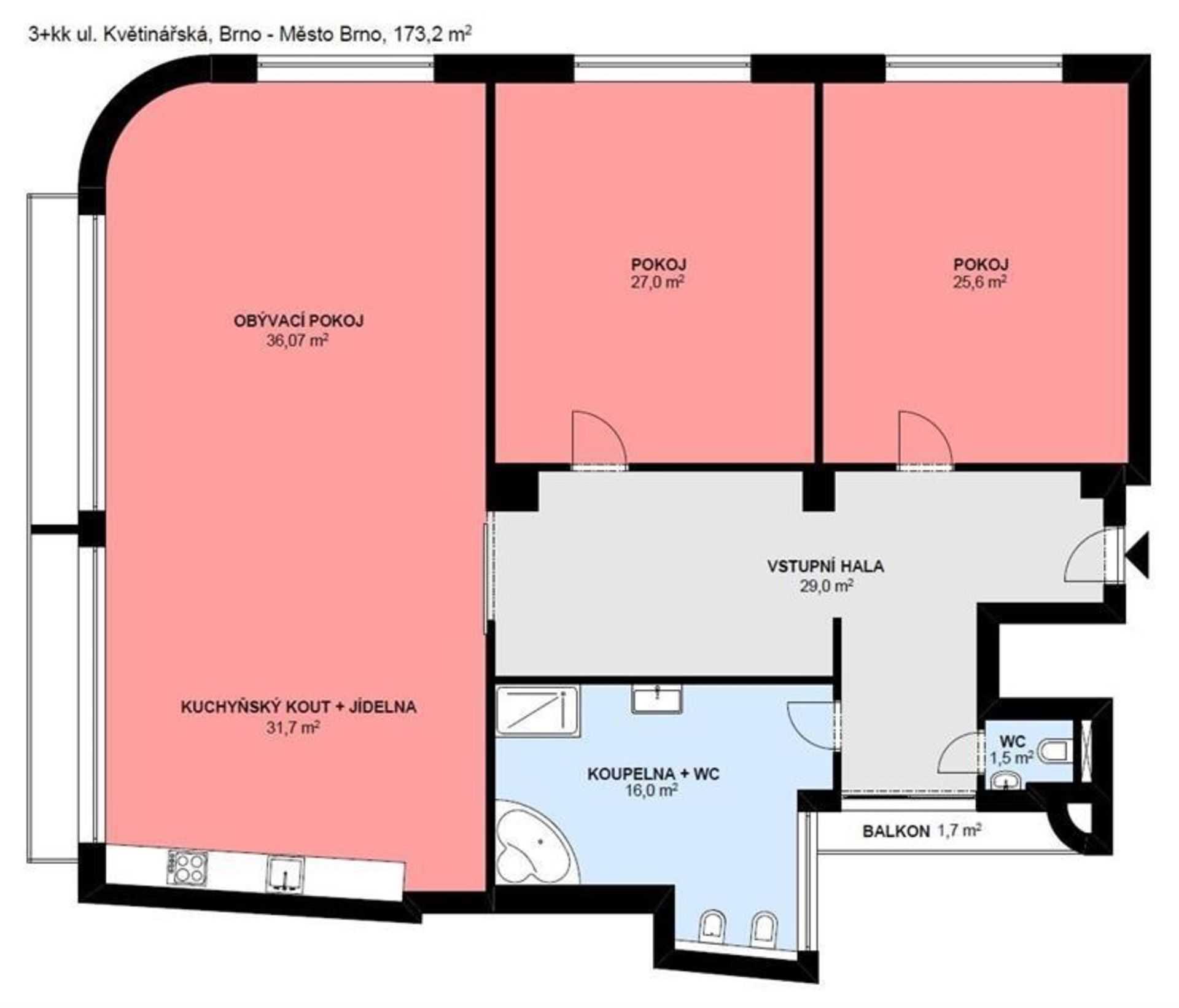 3+kk apartment for rent, Brno - center, Květinářská street, furnished, elevator, air conditioning, balcony, internet