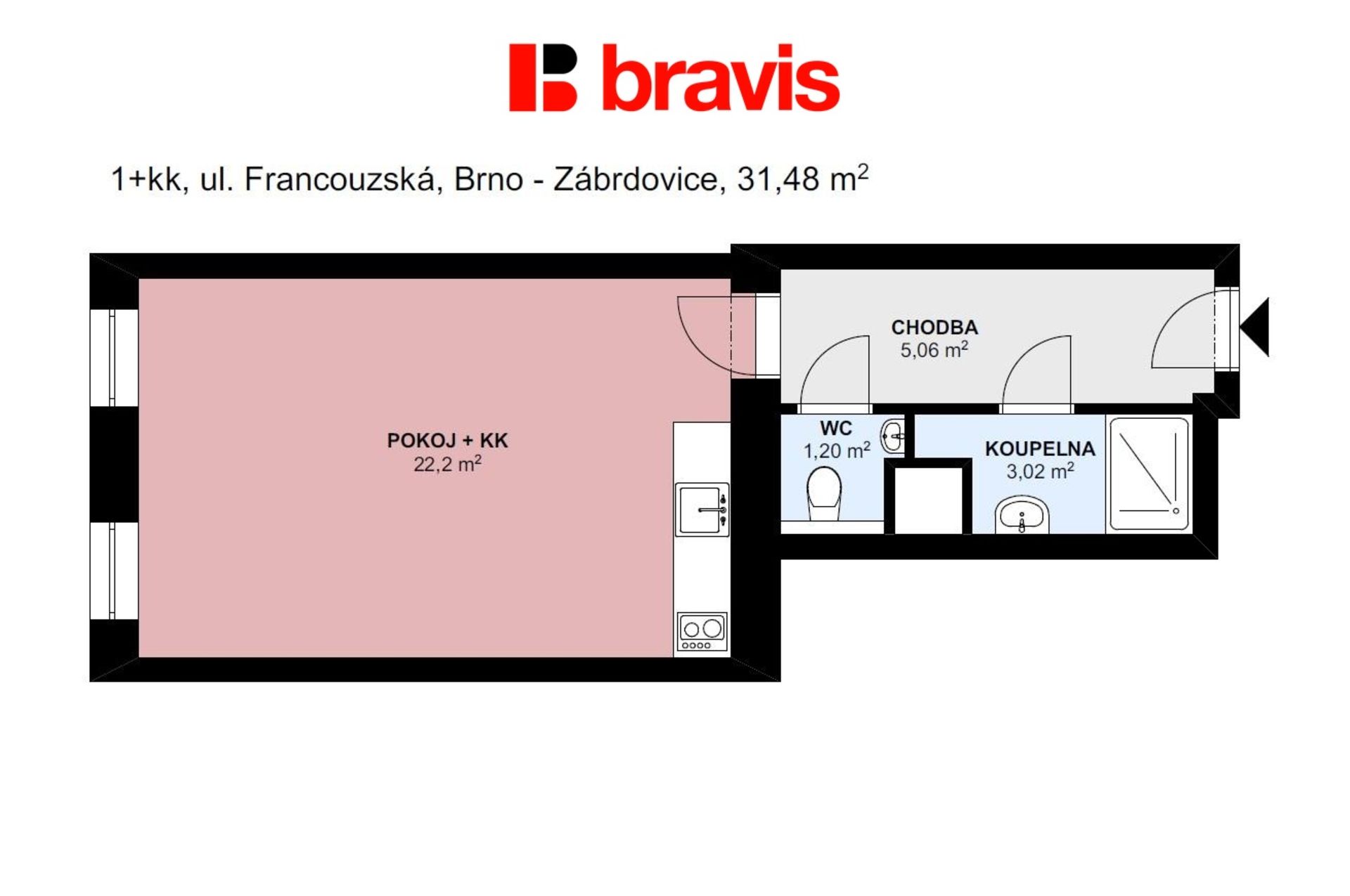 As the exclusive representative of the owner, we offer for rent a 1+kk apartment in a constructed apartment building with an elevator on Francouzská Street, Brno - Zábrdovice.