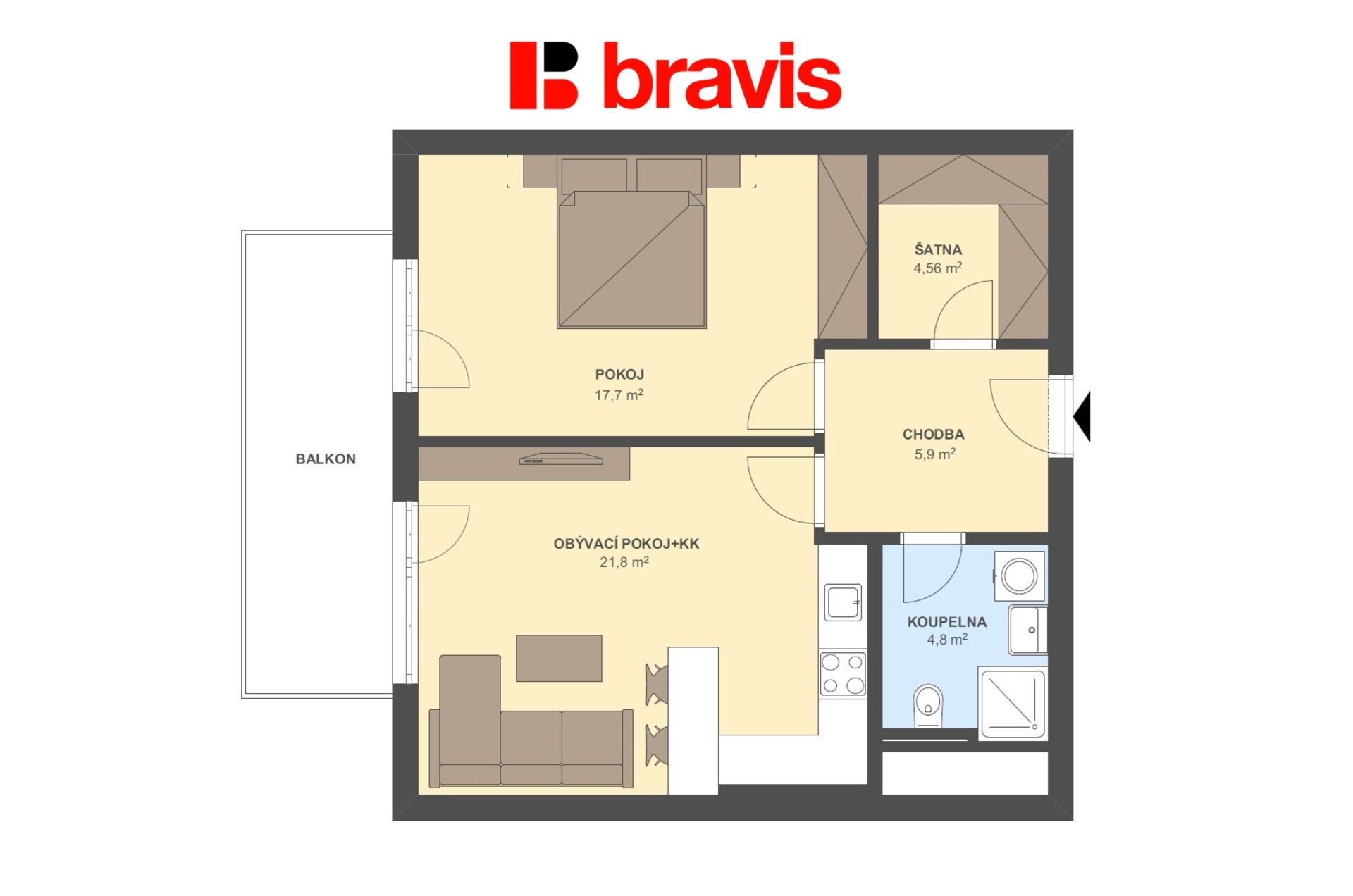 We are an exclusive agent offering a 2+kk apartment for long-term rent in the Centropolis complex on Nové sady Street.