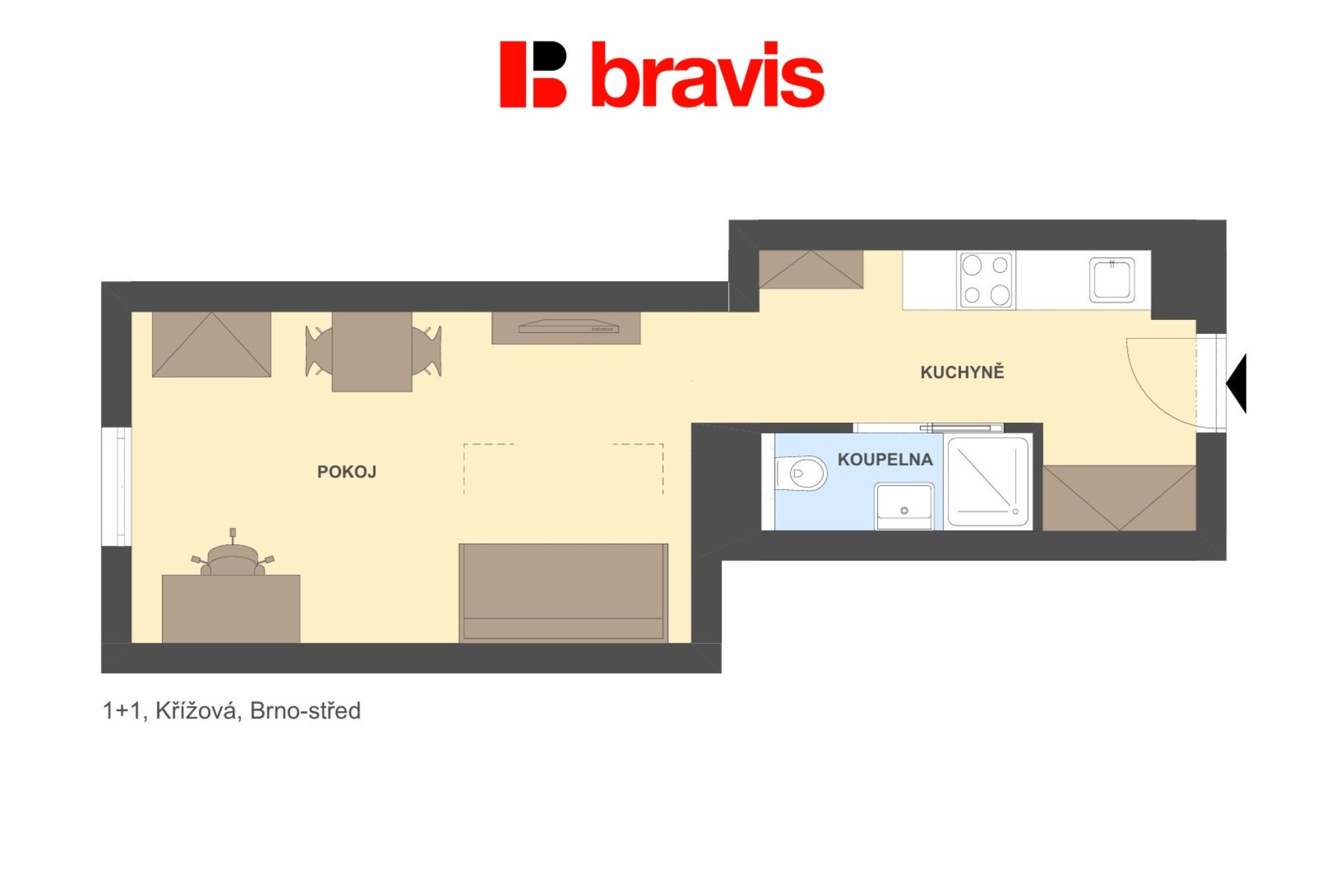 On the exclusive representation of the owner, we offer for rent a 1+1 apartment on Křížová Street, Brno - Střed.