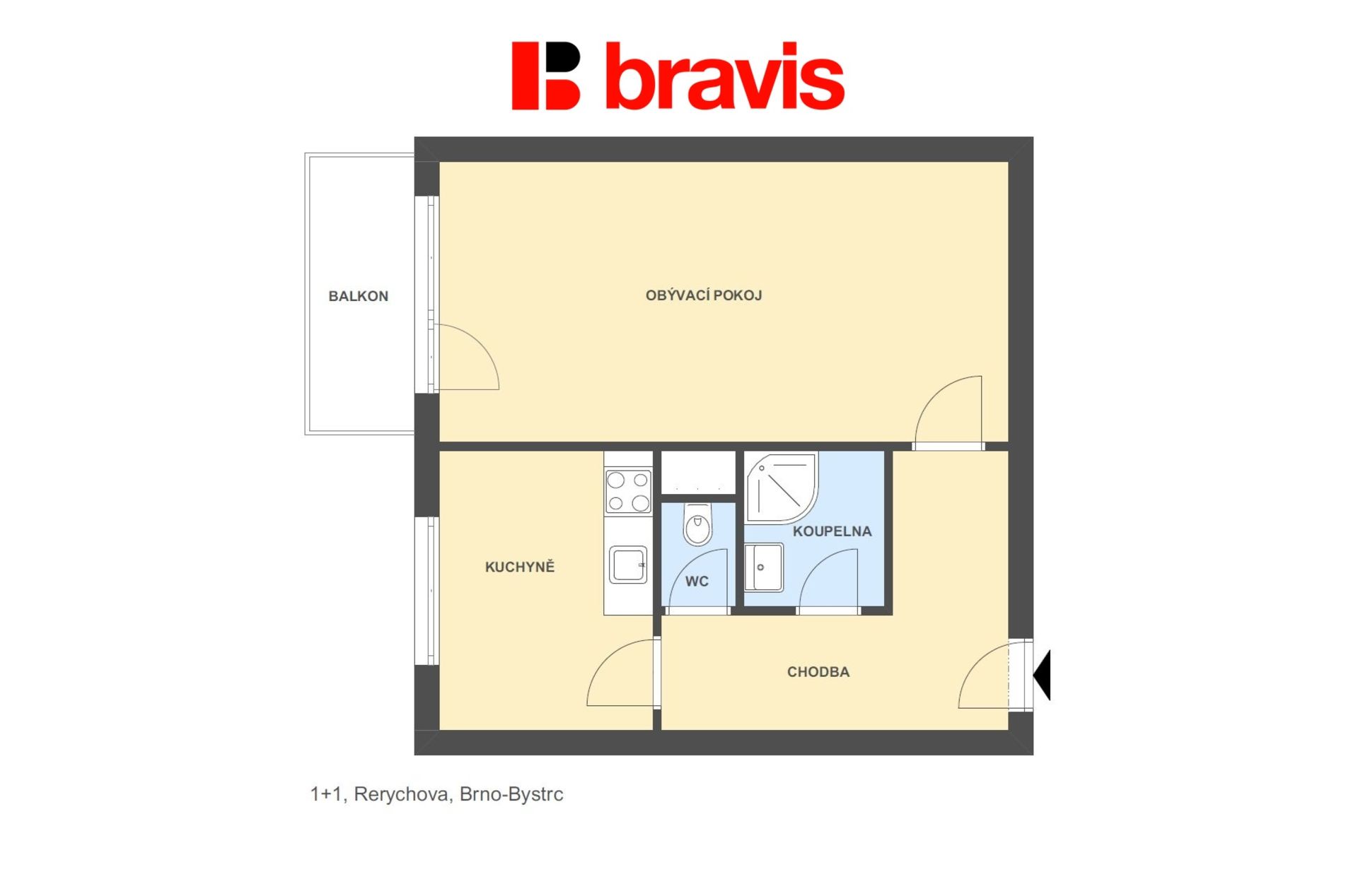 Ve výhradním zastoupení majitele nabízíme k dlouhodobému pronájmu velmi pěkný byt o velikosti 1+1 v klidné lokalitě Brno - Bystrc na ul. Rerychova.