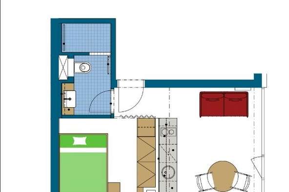 The fully furnished studio of 51 m² is a great choice for students or starting workers. Can also be rented for short periods starting from one month.