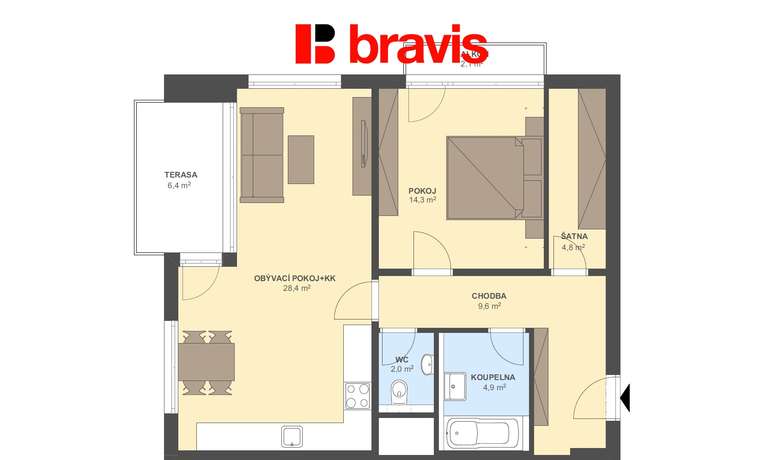 The apartment includes a 2.1 m2 cellar.