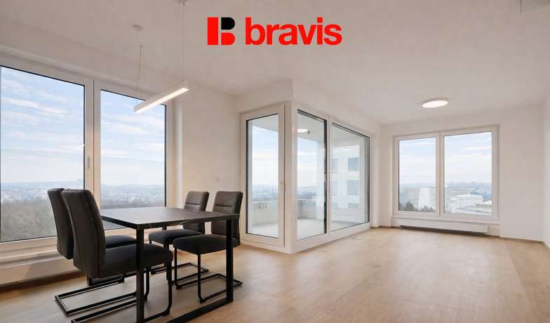 The living area is unfurnished. From the living area there is an entrance to the loggia with a beautiful view of the whole of Brno.