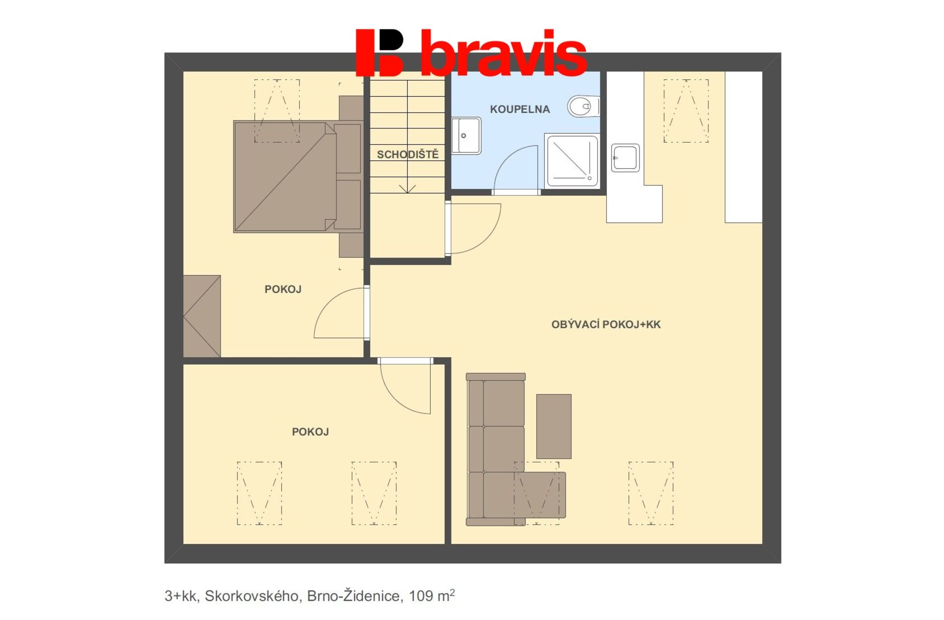 On the exclusive representation of the owner, we offer for long-term rent a fully furnished apartment with a 3+kk layout on Skorkovského Street in Brno-Židenice.