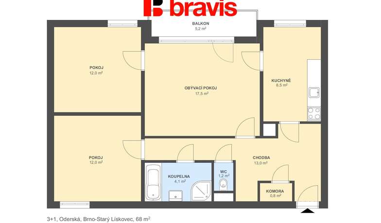 Sale flats 3+1 68 m², Brno - Starý Lískovec Reserved