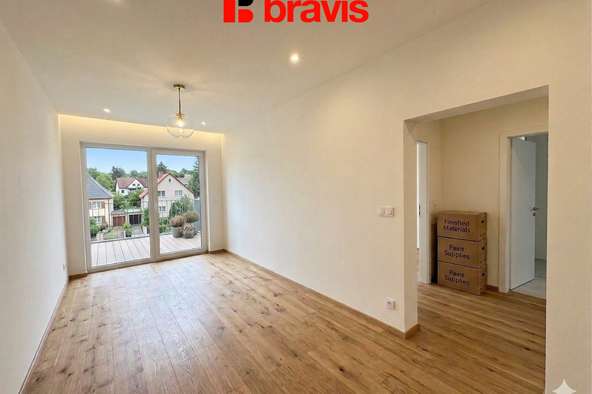 On behalf of the developer, we exclusively offer for sale a newly built apartment with a layout of 2.5-room + kitchenette (unit no. 9) and a total usable area of 56.4 m², located in the village of Lipůvka near Brno. The apartment features a spacious living room with a kitchenette (19.2 m²), a bedroom (16.5 m²), and a smaller room suitable as a walk-in closet or home office (9 m²). The hallway provides ample space for built-in storage (6.9 m²), along with a bathroom (4.8 m²).