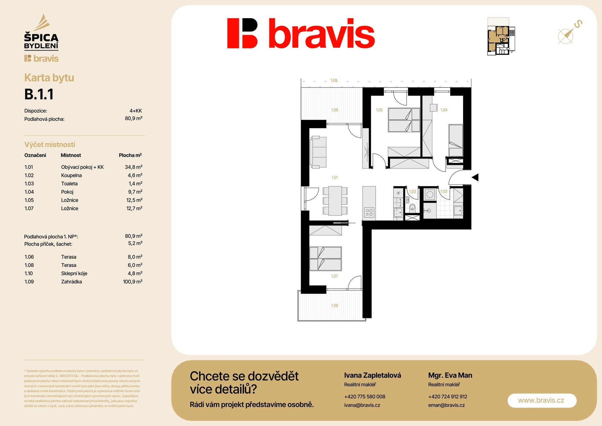 Apartment parameters (4+kk with a spacious garden of 100.9 m²)