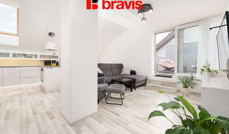 As an exclusive representative, we offer you a unique opportunity to purchase a spacious and airy duplex apartment 2+kk with a gallery with a usable area of 94.5 m2 in the sought-after and quiet location of Jablonovy sad in Moravany u Brna, on Višňová street. This apartment is the perfect choice for anyone looking for comfortable and modern housing with excellent access to Brno, but at the same time longing for a quiet environment with plenty of greenery.