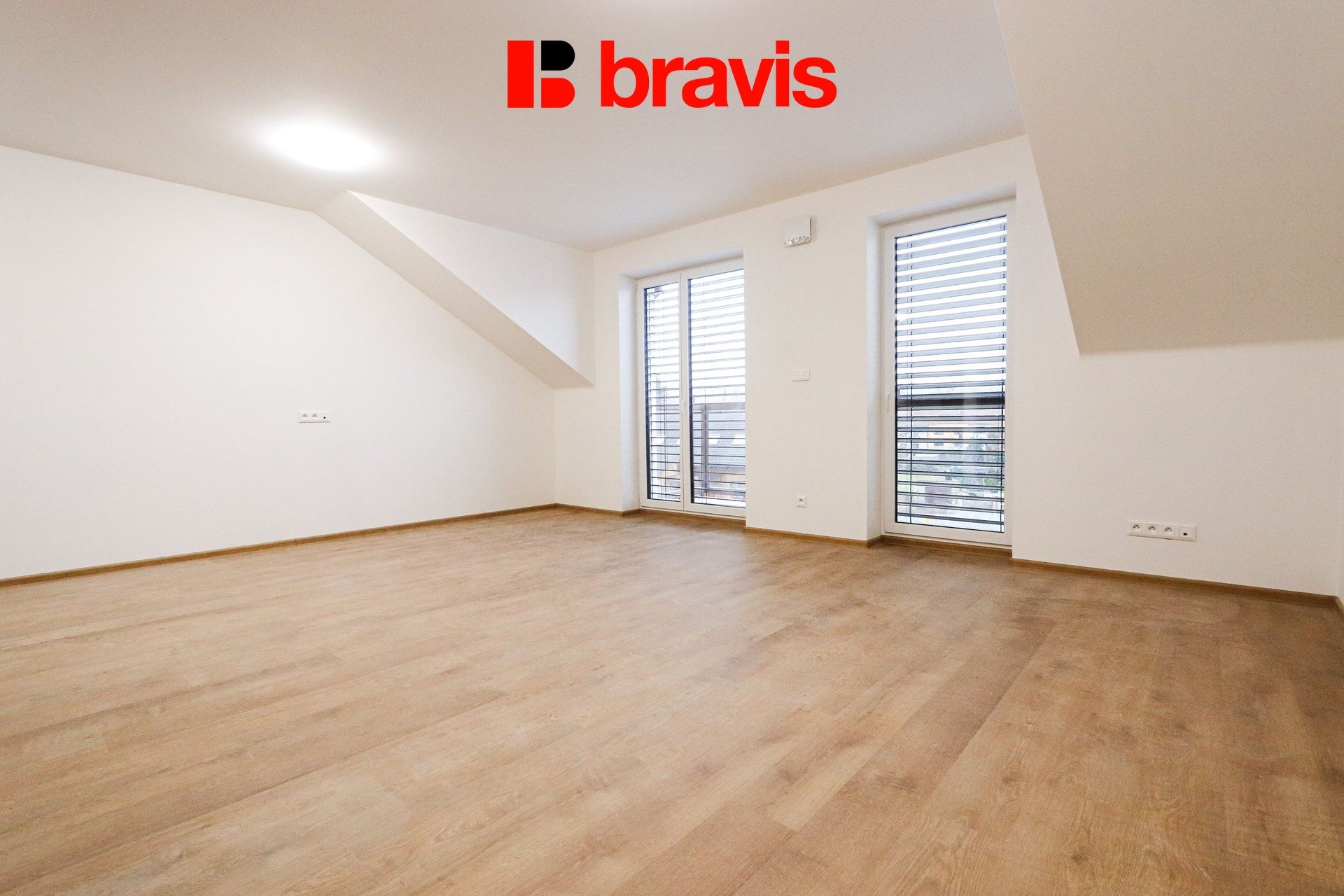 In the living room there are two windows with outdoor blinds. The orientation of the room is south-west.