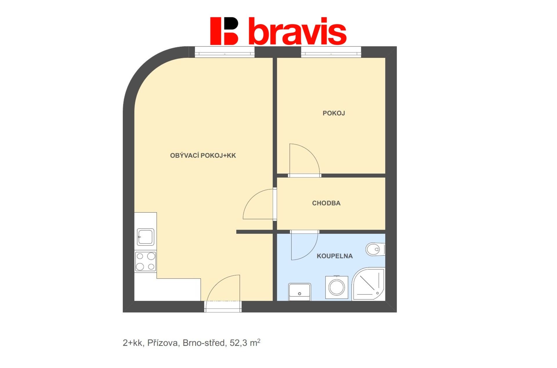 V zastoupení majitele nabízíme k dlouhodobému pronájmu byt o dispozici 2+kk v městské části Brno - Trnitá na ulici Přízova.