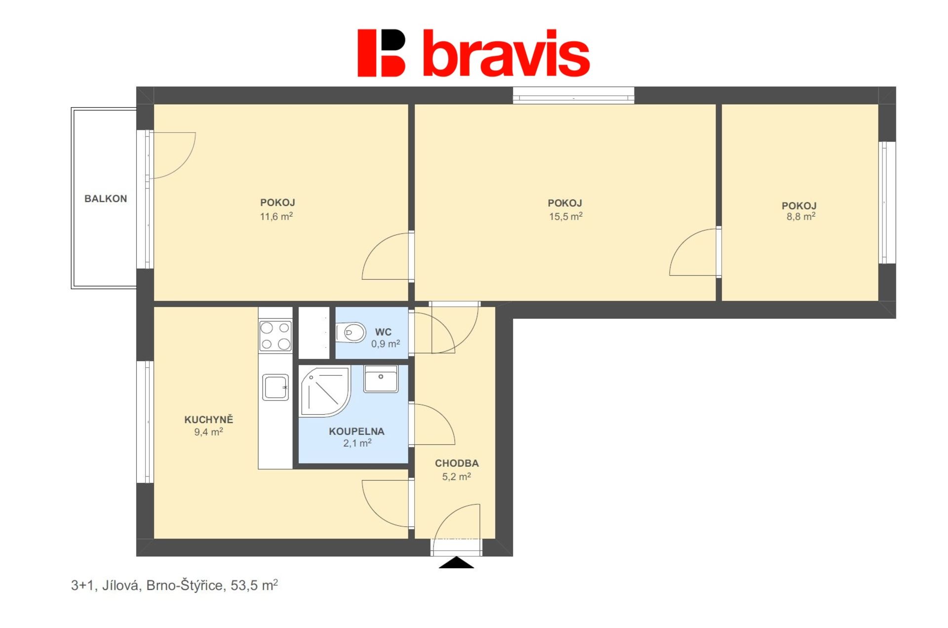 Ve výhradním zastoupení nabízíme k prodeji byt o dispozici 3+1 na ul. Jílová v Brně - Štýřice, s velmi dobrou dostupností.