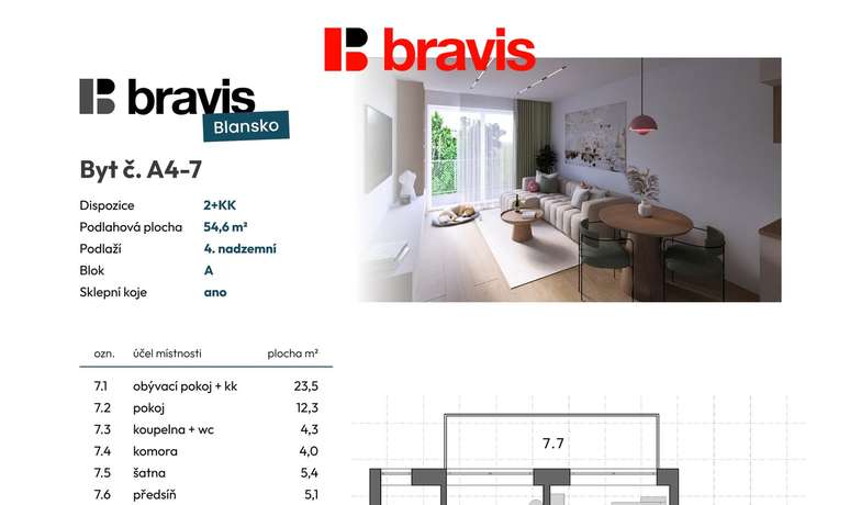 Nabízíme vám k prodeji moderní byt označený A4-7 o dispozici 2+kk v novém projektu Rezidence Zborovce v Blansku. Tento projekt představuje nadčasové a kvalitní bydlení v klidné lokalitě s veškerou občanskou vybaveností.