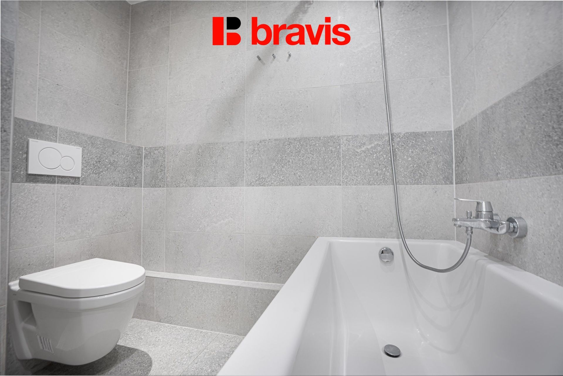 Koupelna disponuje vanou, umyvadlem a toaletou. Součástí je přípojka na pračku a zároveň zde zůstává prostor i pro umístění sušičky. V předsíni se nachází vestavná skříň poskytující dostatek úložného prostoru.