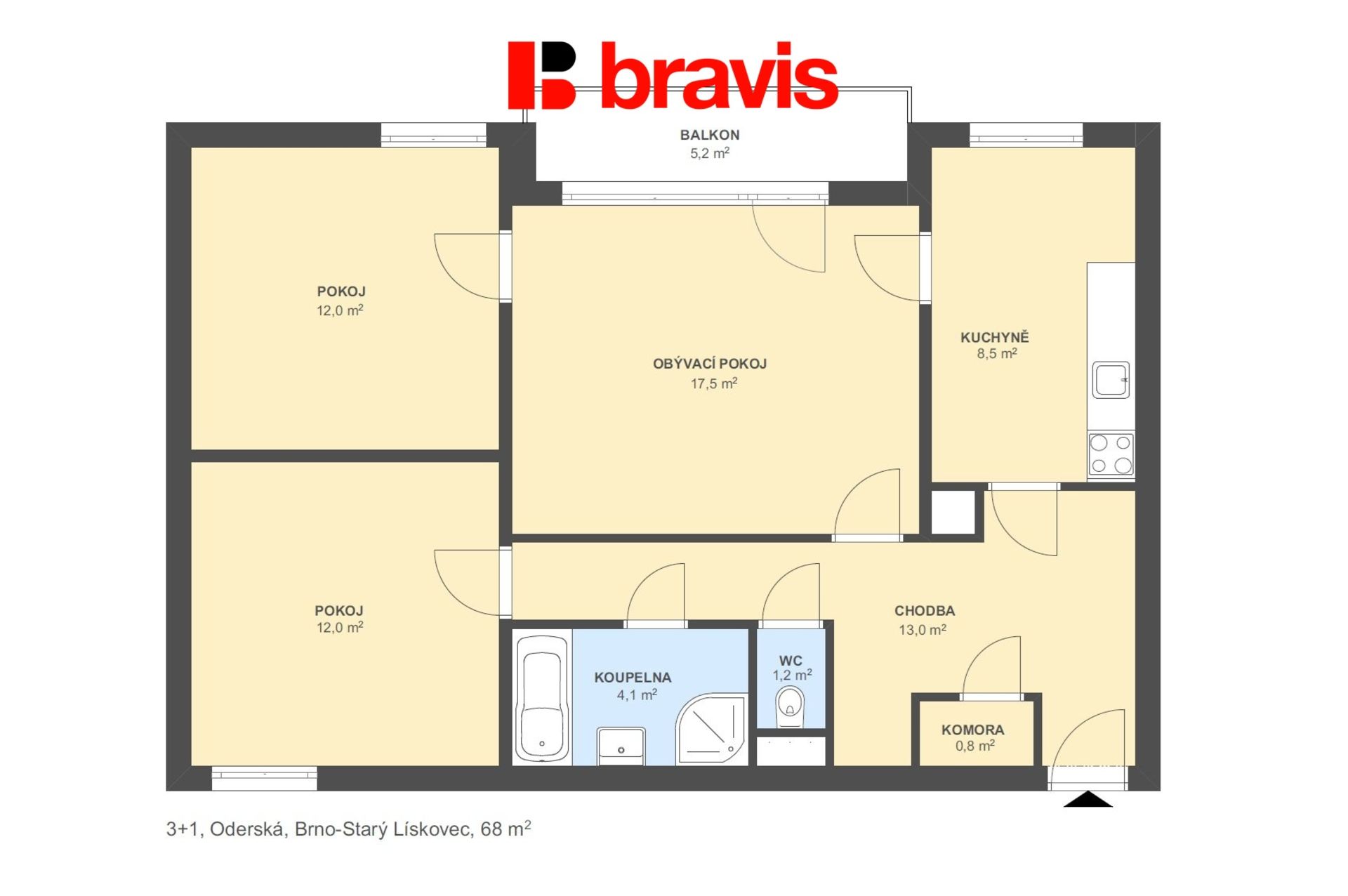 Hledáte komfortní bydlení v klidné a zároveň dobře dostupné lokalitě Brna? Představujeme vám výbornou příležitost pro rodiny, páry i investory – prostorný byt 3+1 o užitné ploše 68 m2 na ulici Oderská v Brně - Starém Lískovci.