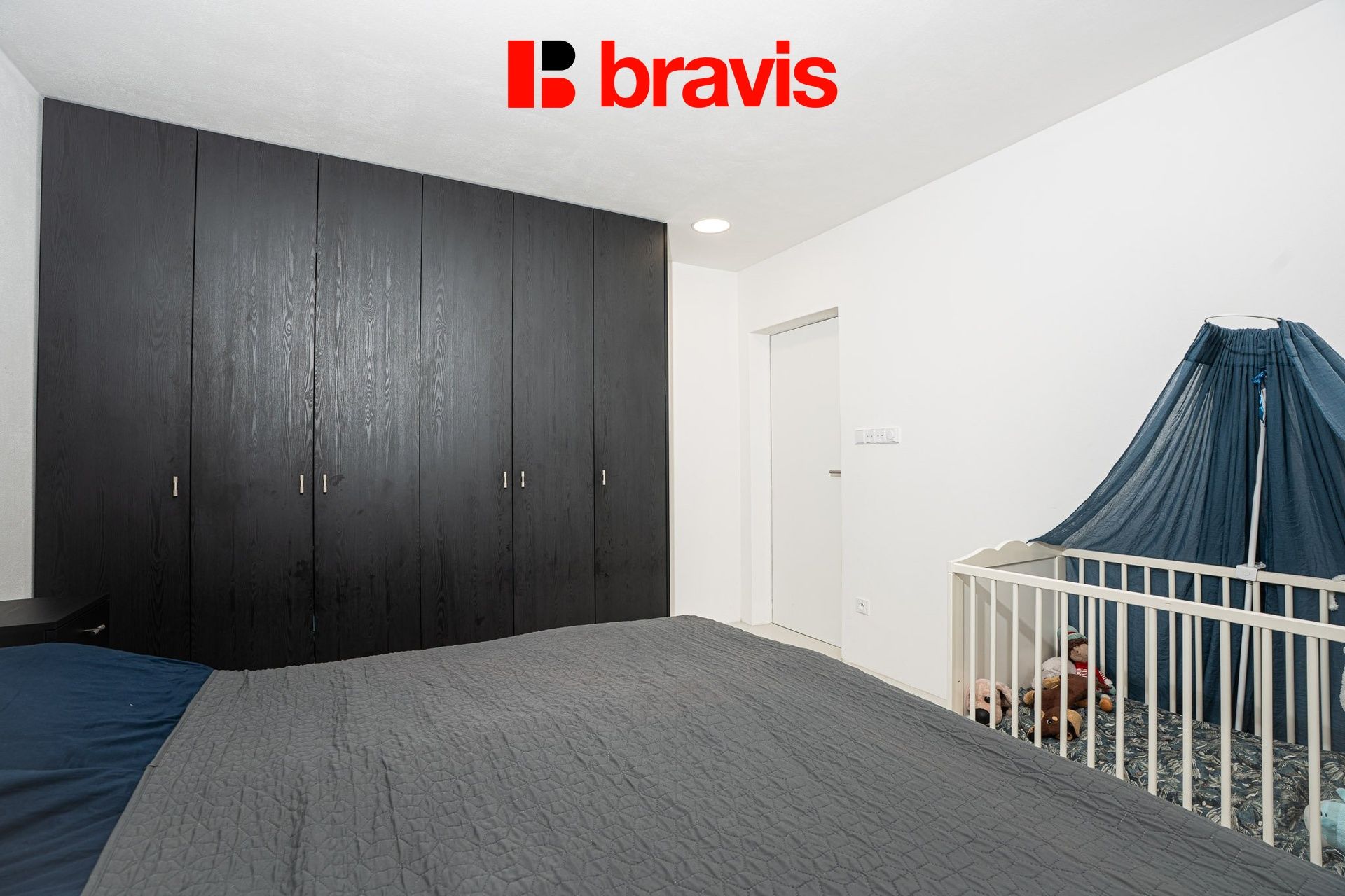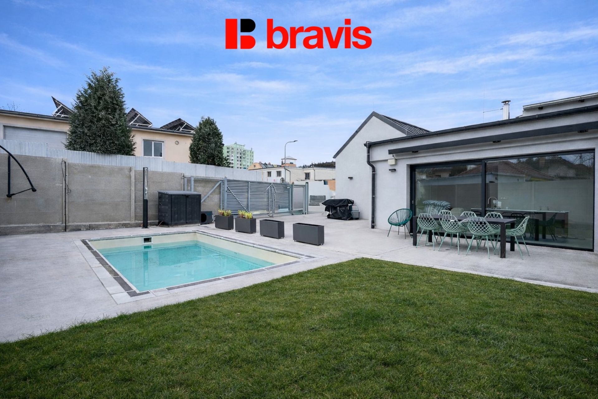 Tento byt představuje ideální kombinaci komfortního bydlení, moderních technologií a výborné dostupnosti do Brna. Najdete zde vše, co od současného moderního bydlení očekáváte – dostatek prostoru, promyšlenou dispozici nabízející dostatek soukromí, nízké provozní náklady a příjemné zázemí v podobě zahrady s terasou a vyhřívaným bazénem. Benefitem je možnost parkování pro 2 auta na pozemku.
