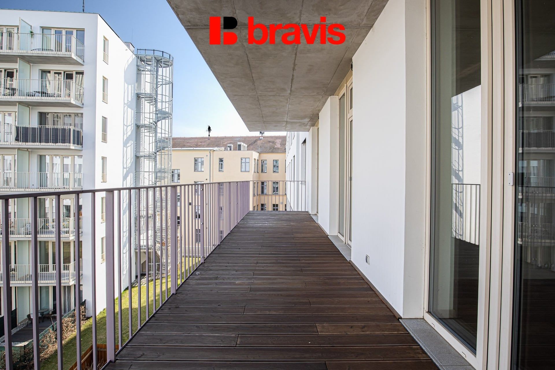 Byt o dispozici 3+kk o podlahové ploše 68,50 m2 a terasou 20,6 m2 je situovaný v 5. NP novostavby s výtahem a orientací do klidného zeleného vnitrobloku.