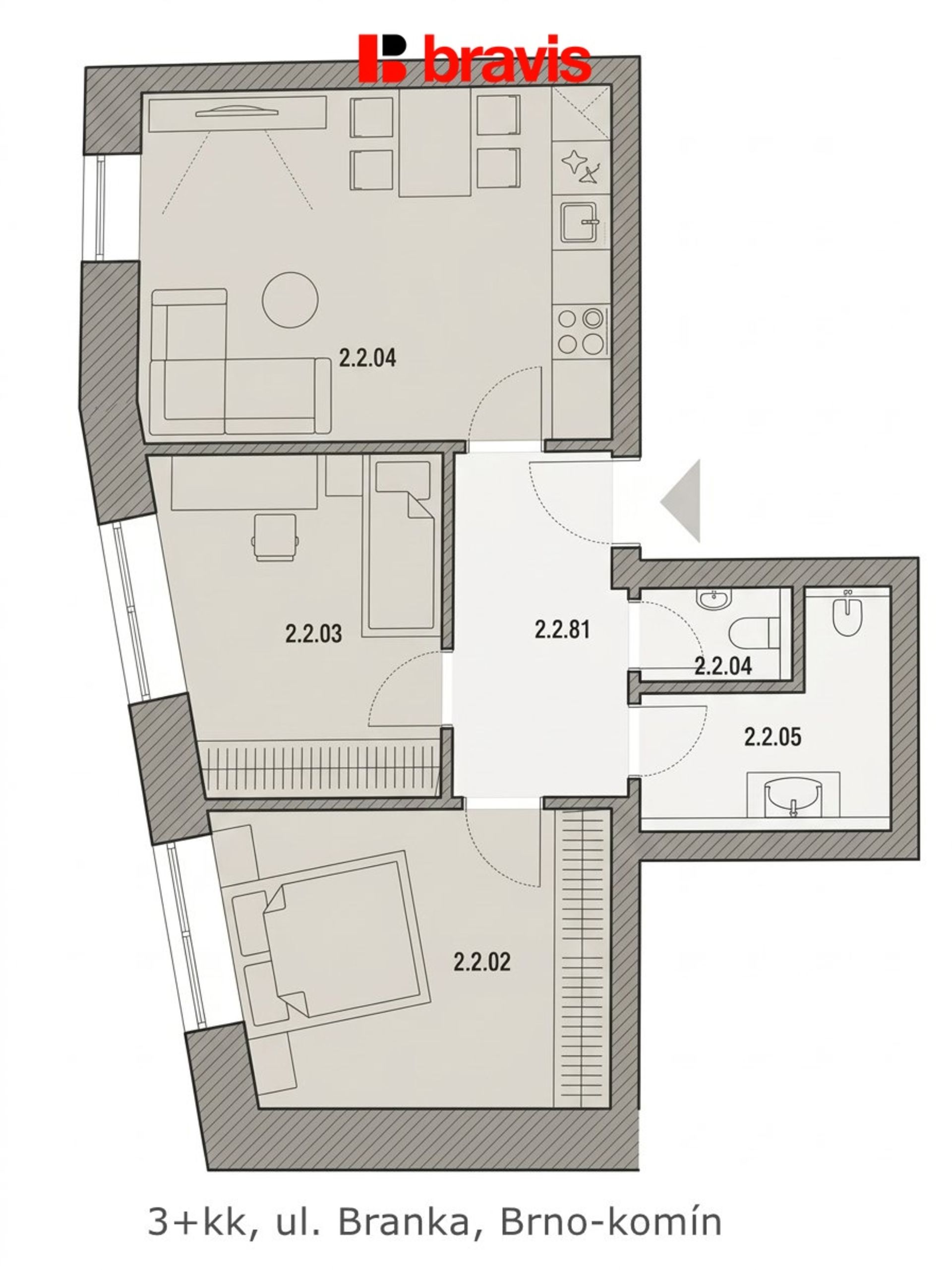 Ve výhradním zastoupení majitele Vám rádi představujeme nabídku k prodeji moderního bytu 3+kk na ul. Branka v jedné z nejvyhledávanějších lokalit, Brno - Komín.