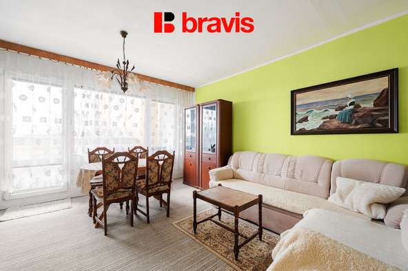Byt o velikosti 80 m² nabízí praktické dispoziční řešení: dva menší samostatné pokoje, ložnici a průchozí obývací pokoj se vstupem na zasklenou lodžii, ze které se nabízí výhled do dalekých lesů a polí. Samostatná kuchyně je oddělená od obytné části. Koupelna je vybavena vanou, toaleta je samostatně.