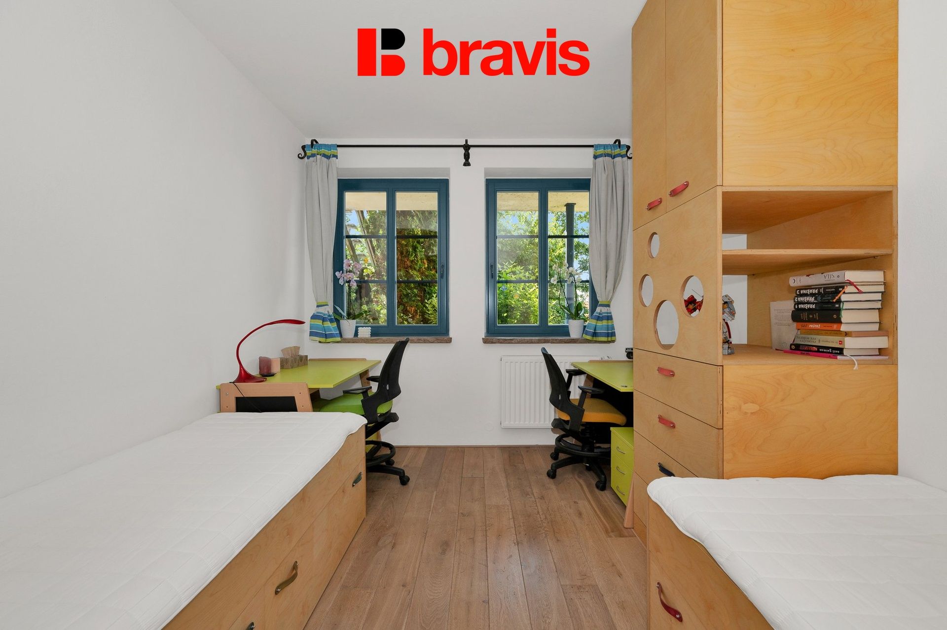 Orientace bytu je na tři světové strany s výhledem vždy do zeleně.