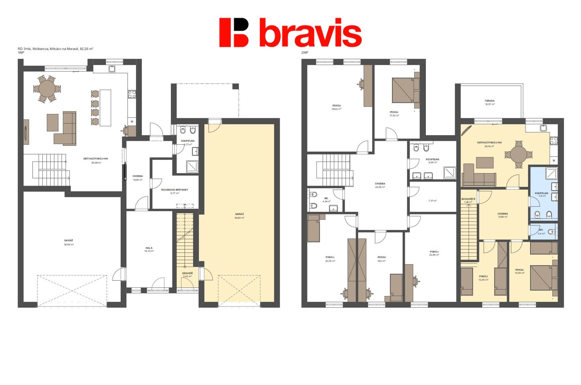 • Prostorná dvojgaráž: 54 m² (pro 2 vozidla s přípravou na nabíjení elektromobilů).