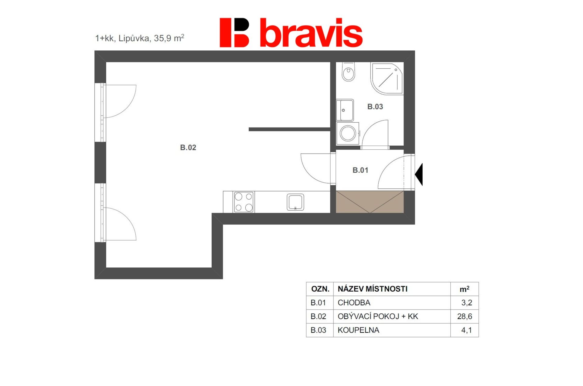 Ve výhradním zastoupení developera nabízíme k prodeji novostavbu bytu o dispozici 1+kk a užitné ploše 40,7 m2 v obci Lipůvka u Brna. Tento byt je ideální volbou pro jednotlivce, mladé páry nebo jako investice do budoucna.