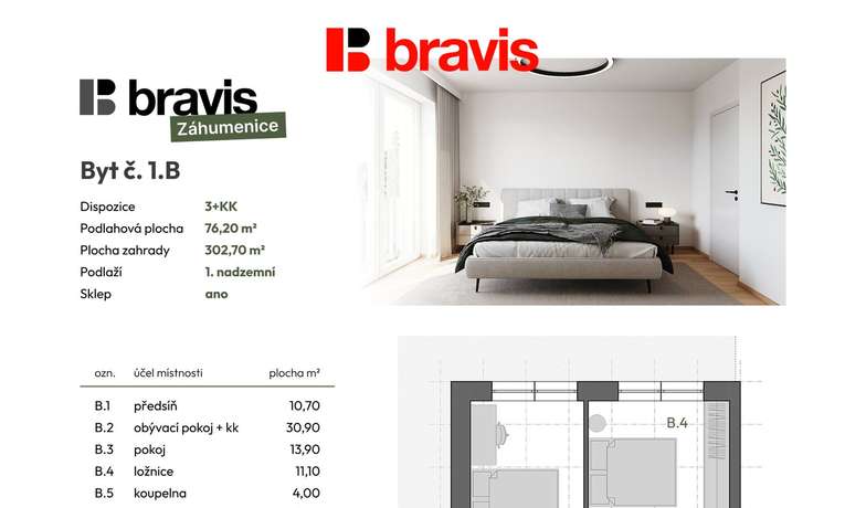 Projekt Záhumenice 21 nabízí 12 promyšlených bytů v dispozicích 1+kk až 4+kk, od menších praktických jednotek po prostorné rodinné byty. Každý byt kombinuje komfort moderního bydlení s funkčním řešením a dlouhodobou hodnotou.
