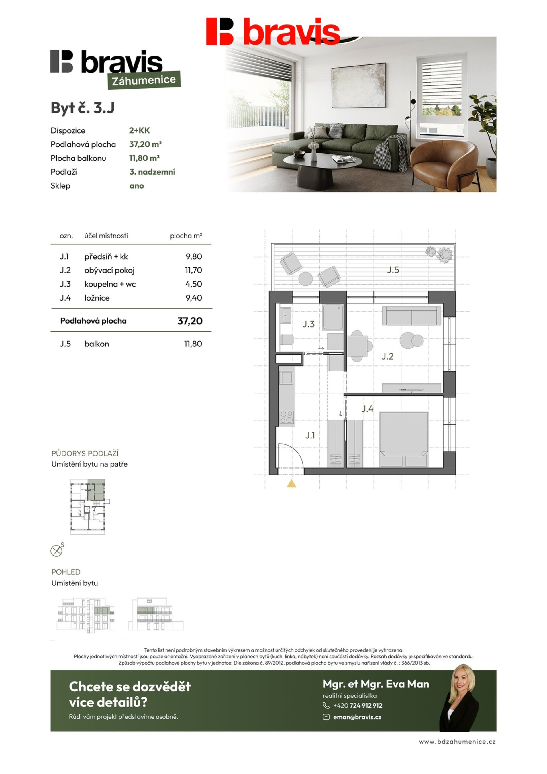 • Balkon: 11,8 m² – pro chvíle odpočinku