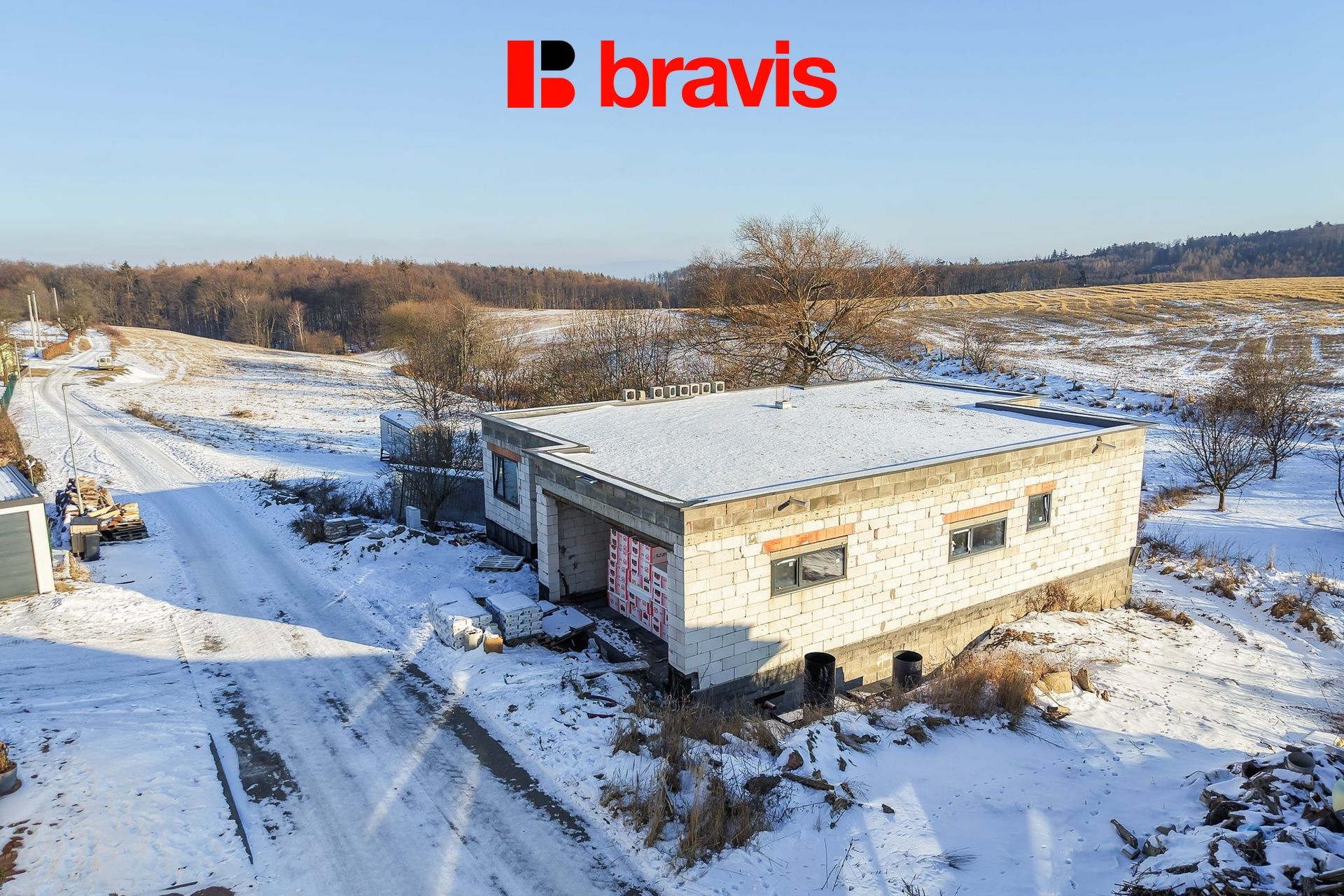 Vnitřní příčky jsou již vybudovány a objekt má jasně dané dispoziční řešení.