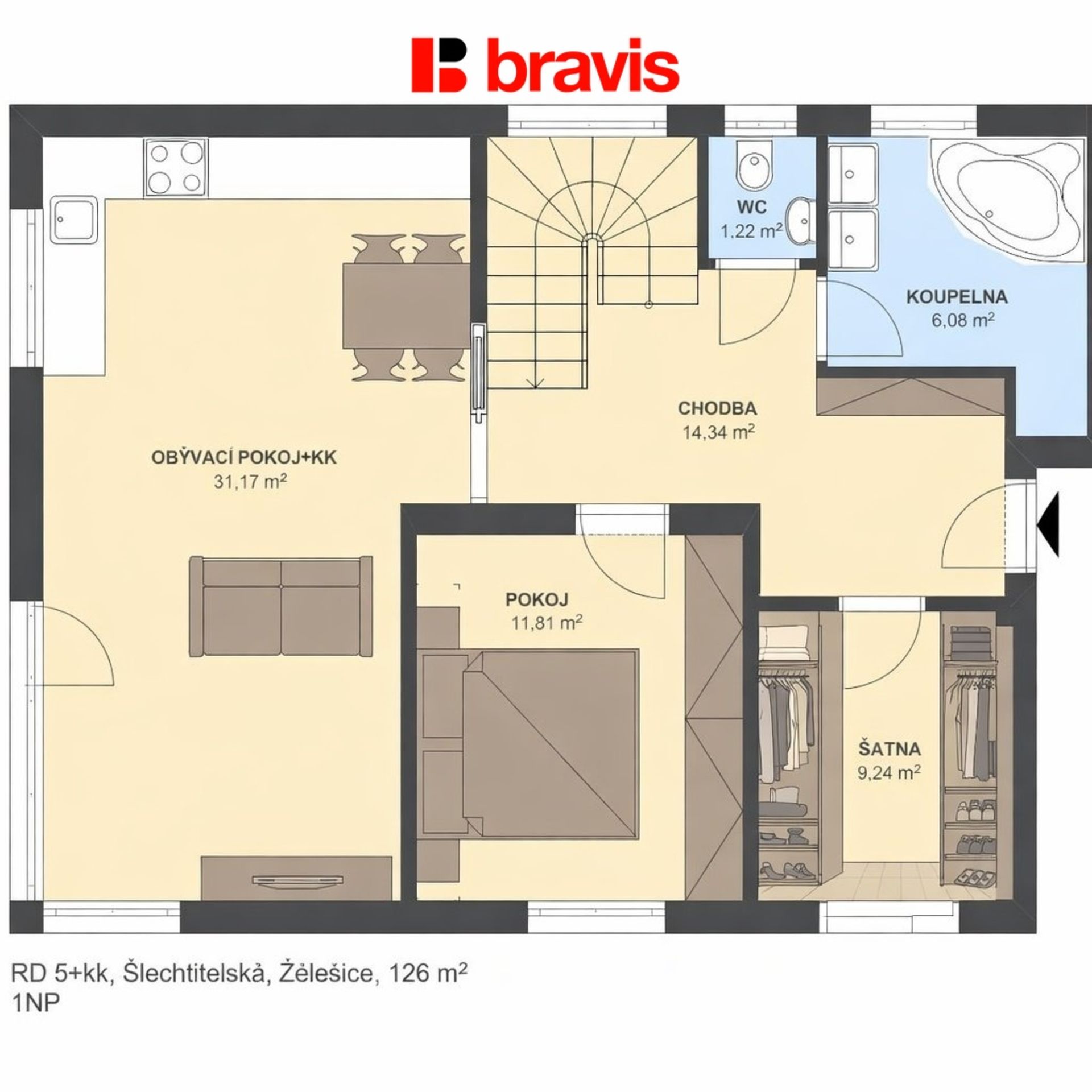 Prodej nízkoenergetického RD 4+kk (126m²), Želešice u Brna, prostorná šatna, garáž (29m²), zahrada, v blízkosti lesa