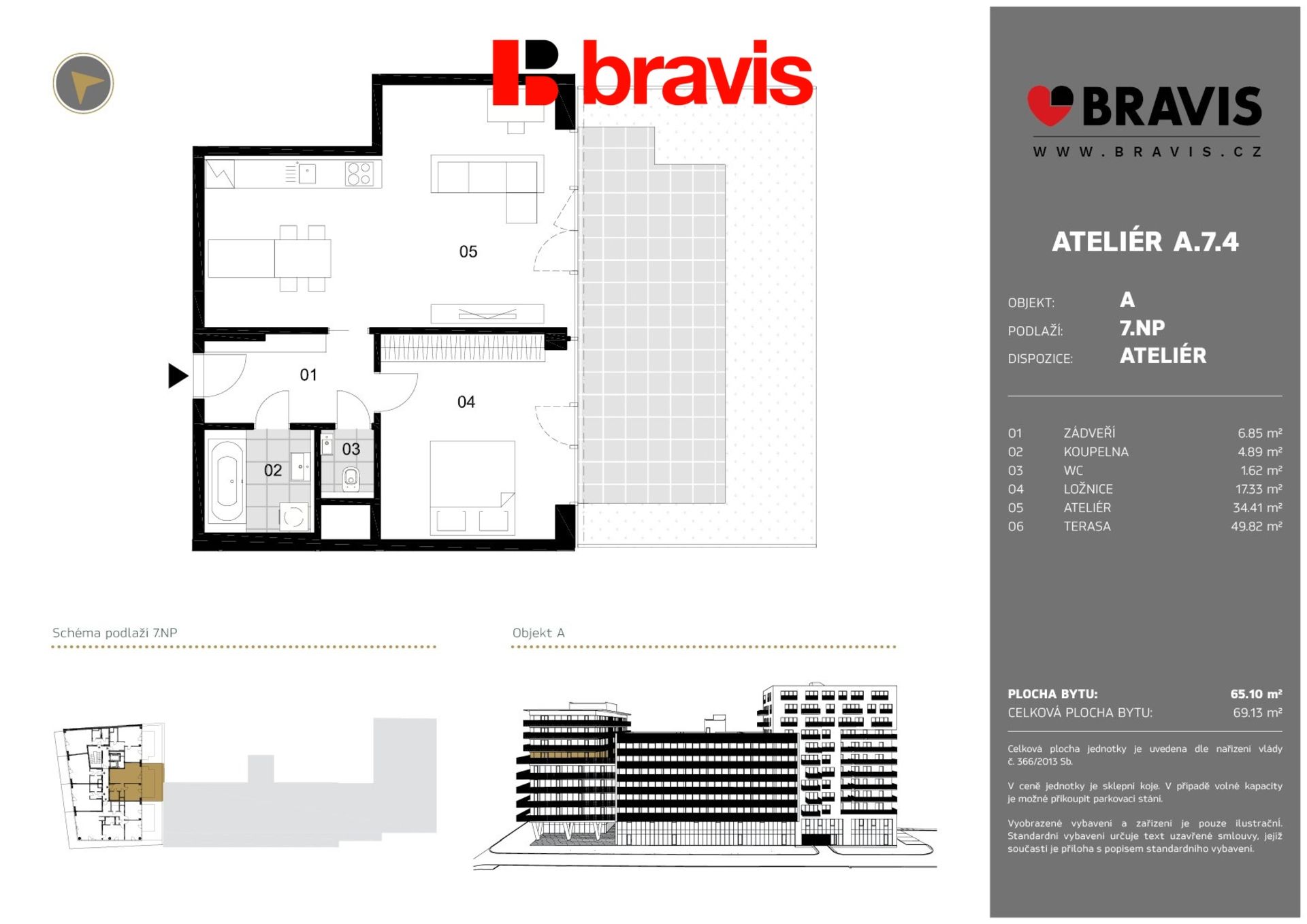 Představujeme Vám exkluzivní nabídku prodeje bytové jednotky 2+kk o celkové podlahové ploše 69m2, ke kterému náleží prostorná terasa 50 m2 a sklep.