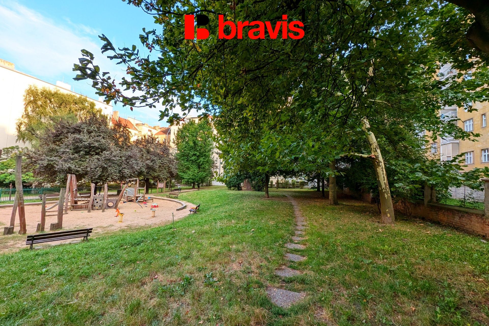 Veveří - okolí širšího centra města Brna, nabízí veškerou občanskou vybavenost – mateřské školy u domu, základní škola, obchody, restaurace, kavárny, městský park Lužánky a další služby. Zastávky MHD jsou v těsné blízkosti domu (trolejbusuvé spojení do centra města Brna cca 5 minut). Dobré je také dopravní napojení autem. Parkování je v modrých zónách.