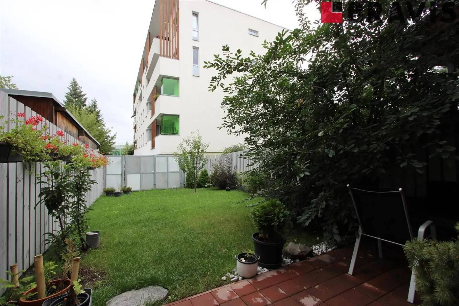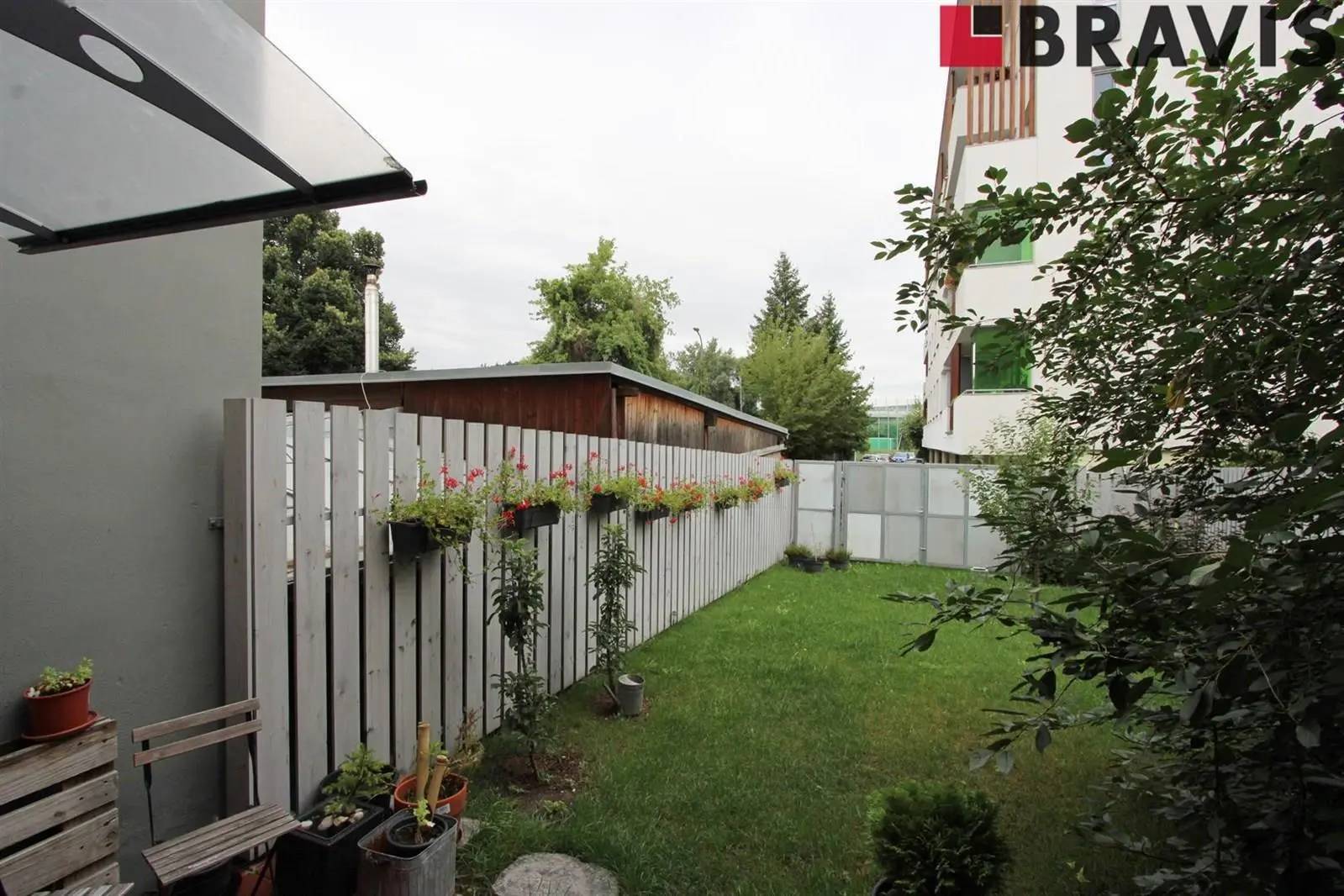 Udržovaná zahrada 74 m2 s terasou na posezení 20 m2 poskytuje dostatek soukromí od okolí.