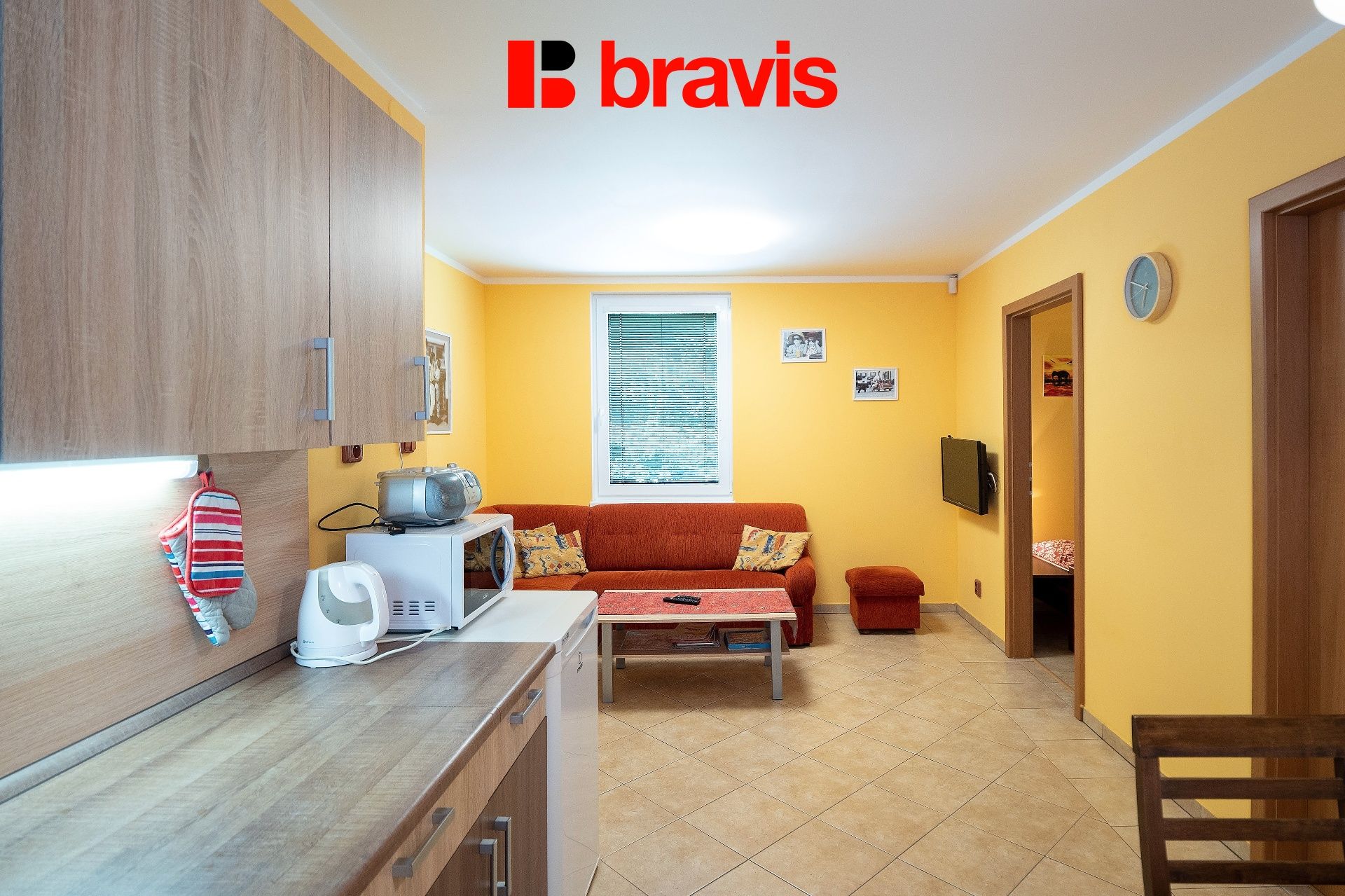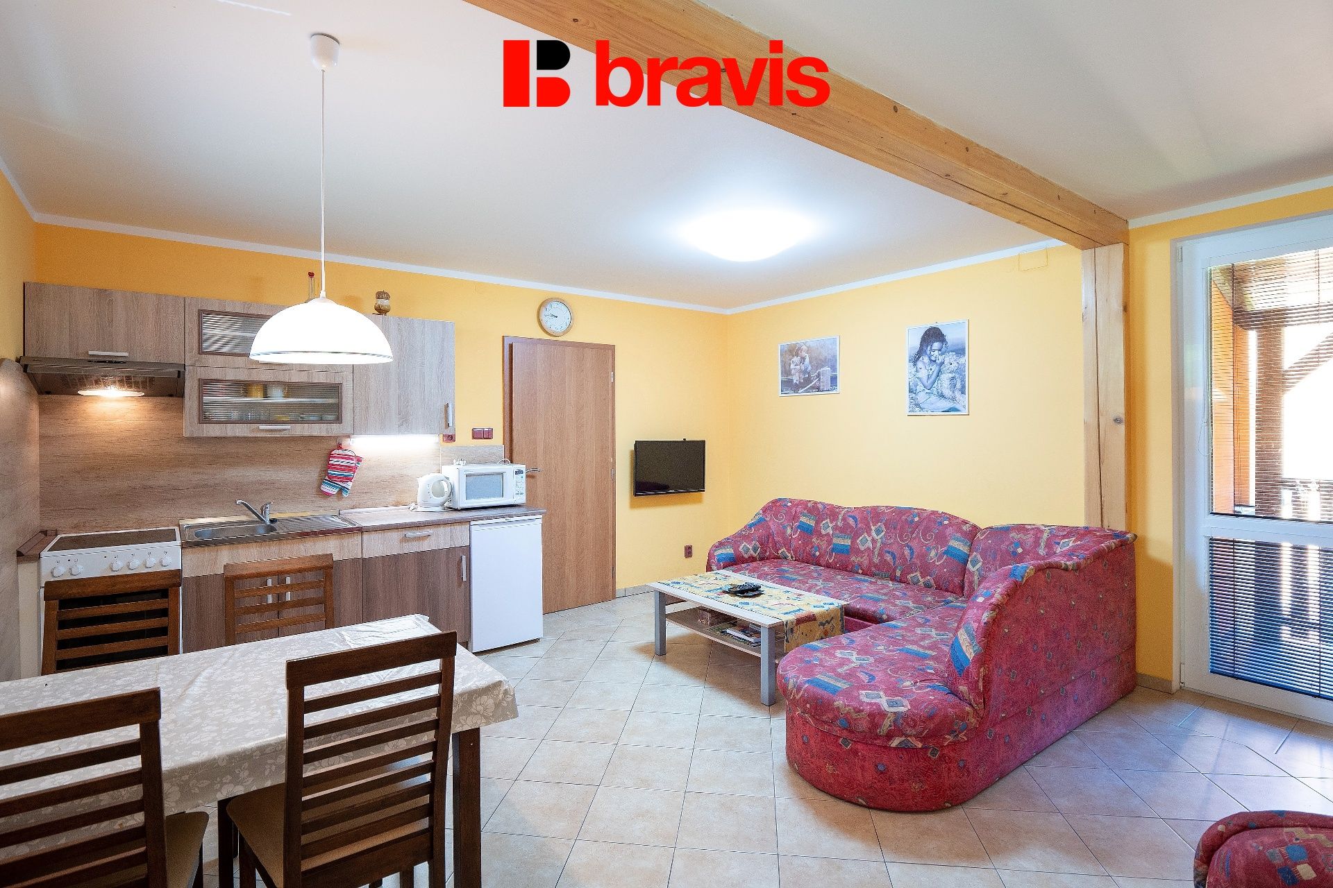 Oba apartmány 3+KK mají samostatný vstup, obývací místnost s kuchyňským koutem, 2 ložnice, koupelnu s WC. Prodej včetně současného vybavení v obou apartmánech. Obývací místnosti jsou vybaveny sedací soupravou, televizí, konferenčním stolkem a jídelním stolem se židlemi. Kuchyňské kouty disponují elektrickou troubou se sklokeramickou varnou deskou, lednicí a mikrovlnnou troubou. Ložnice jsou vybaveny lůžky a skříněmi. Nemovitost tak lze flexibilně využívat pro "dvojí pronájem", nebo kombinovat vlastní rekreaci s výnosem z krátkodobého ubytování. Lze využívat celoročně.