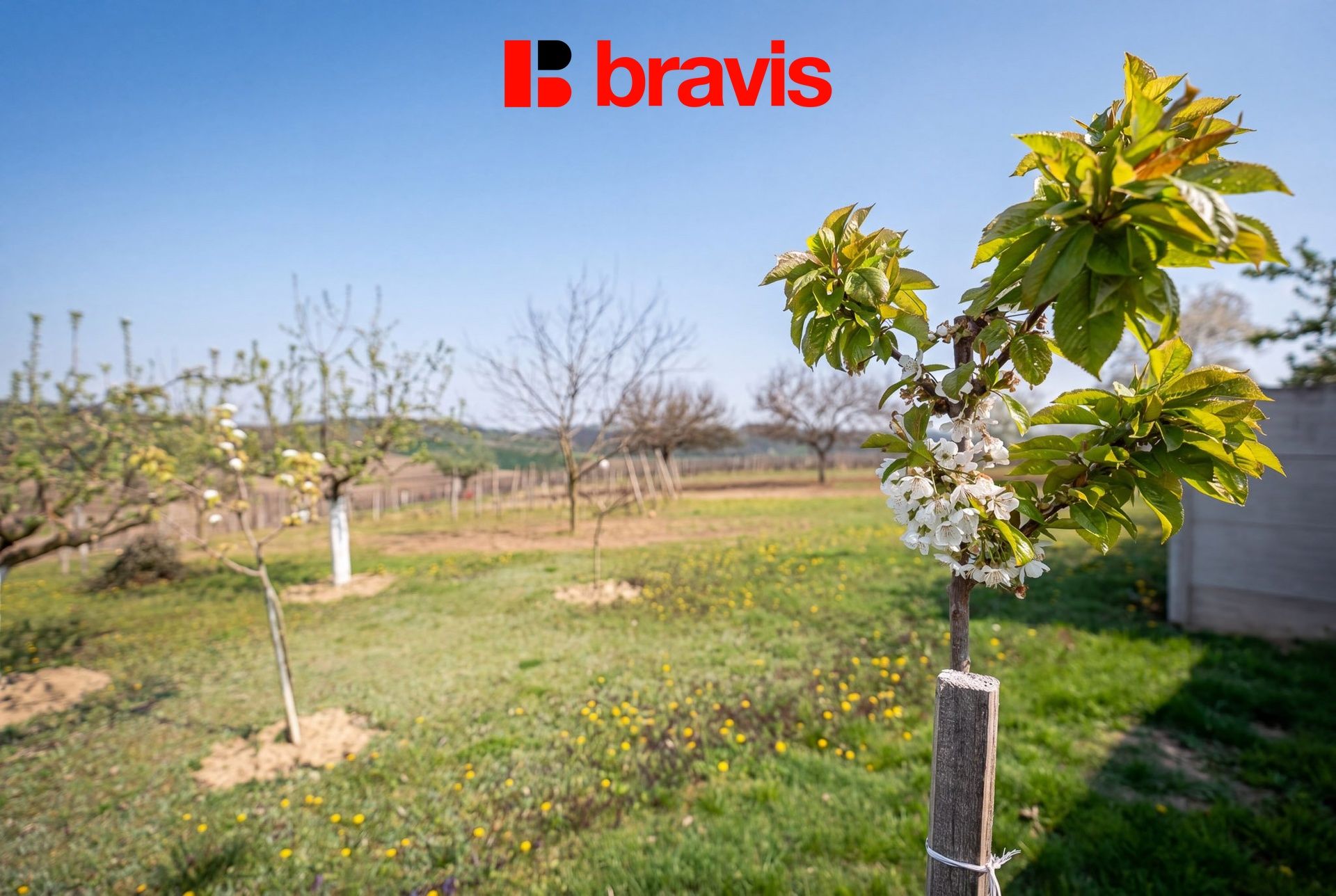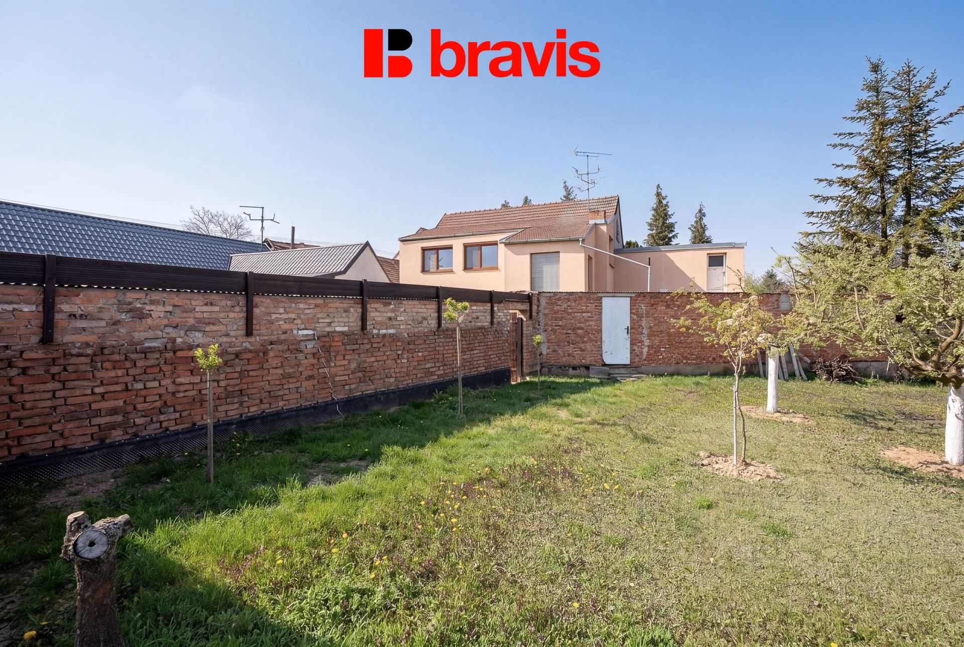 Za domem se nachází uzavřená zatravněná zahrada, na kterou navazuje část s ovocnými stromy a posezením s výhledem na okolní vinohrady.
