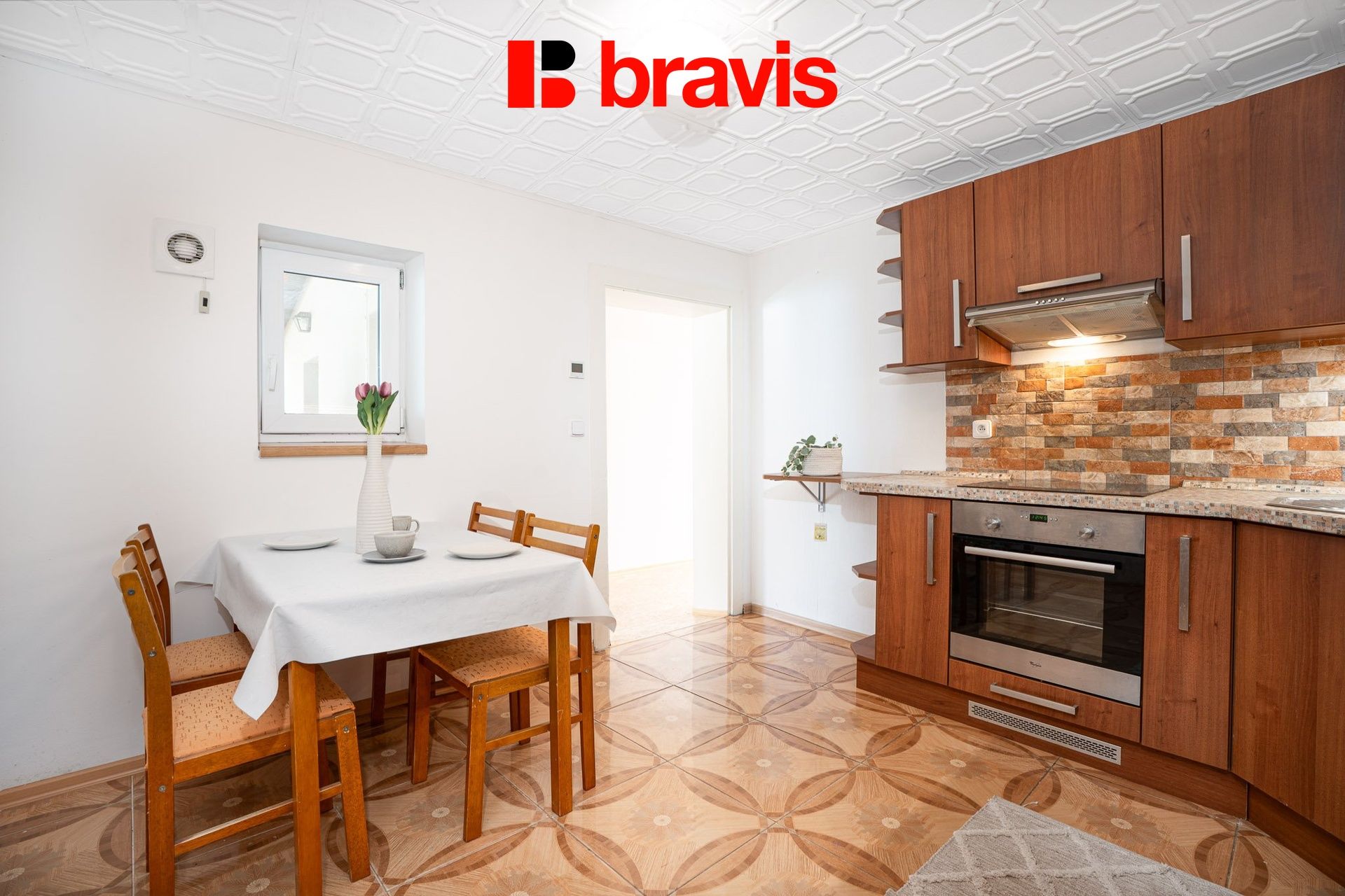 Dům disponuje dvěma neprůchozími pokoji 14 m2,15 m2 a samostatnou kuchyní 11 m2 vybavenou kuchyňskou linkou se spotřebiči.