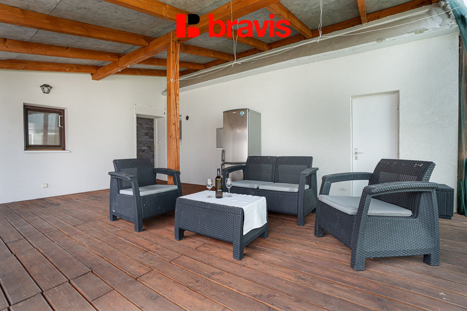 Z obytné části je přímý vstup na prostornou terasu s dřevěnou podlahou 30 m2.