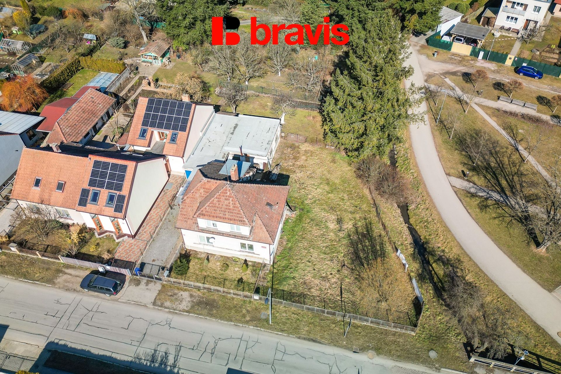 Nemovitost se nachází na opravdu výjimečném místě. Z jedné strany sousedí se zahradou, z druhé je ohraničena parkem, který navíc odděluje malá vodoteč. Díky těmto prvkům si můžete být jistí, že budete mít dostatek klidu a soukromí. Na jižní straně je příjezdová komunikace a na západní vjezd na pozemek. Tato kombinace zajišťuje pohodlnou dostupnost a současně příjemnou atmosféru.