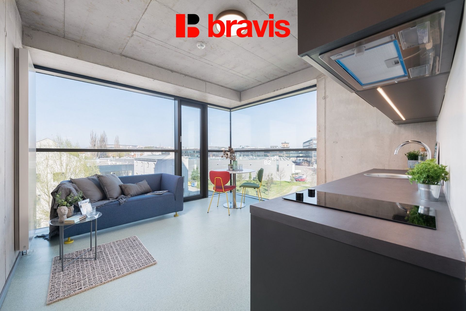 Kompletně zařízené studio o velikosti 24 m² je skvělou volbou pro studenty či začínající pracující. Lze pronajmout i krátkodobě již od jednoho měsíce.